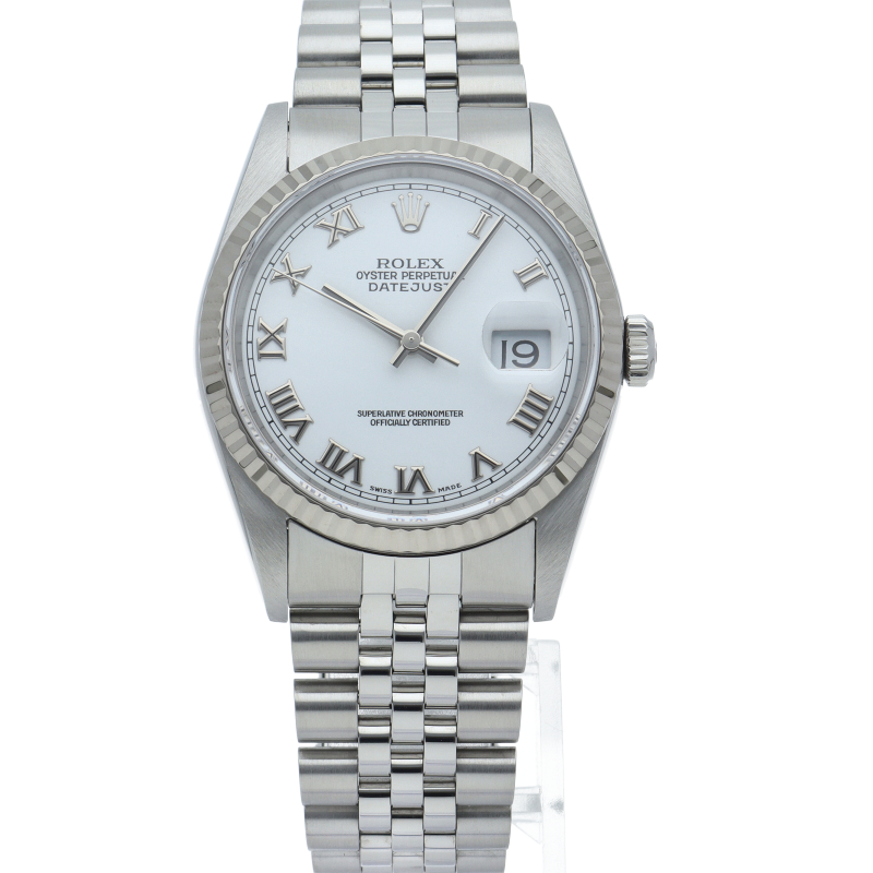 ロレックスのドレスウォッチの王道「デイトジャスト」。ホワイトゴールドとステンレスの組み合わせが高級感を感じさせる1本です。