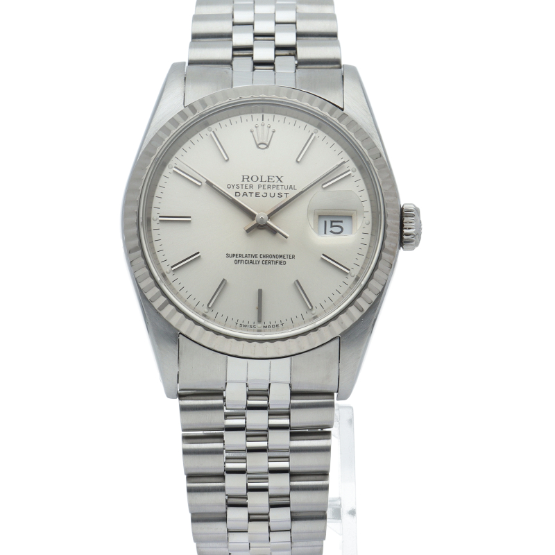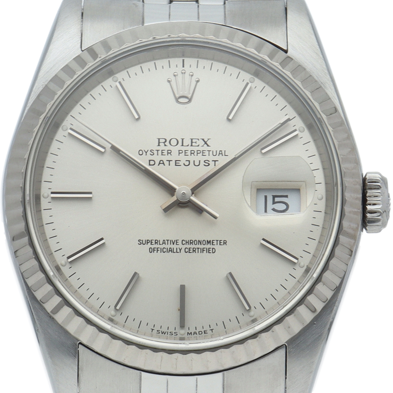 ロレックスのドレスウォッチの王道「デイトジャスト」。ホワイトゴールドとステンレスの組み合わせが高級感を感じさせる1本です。