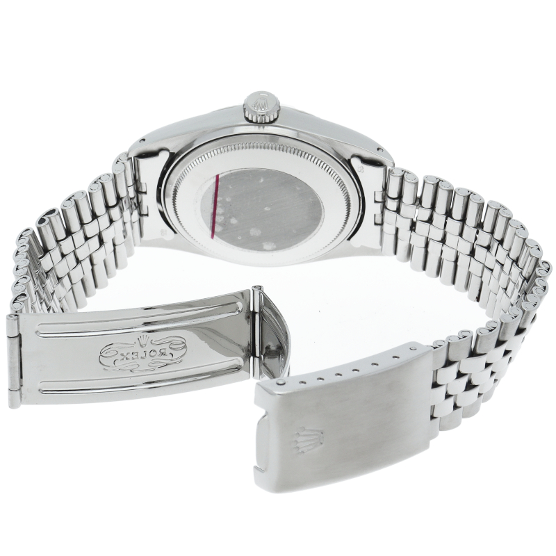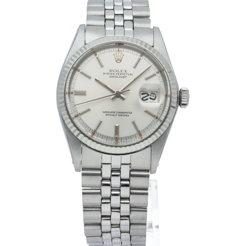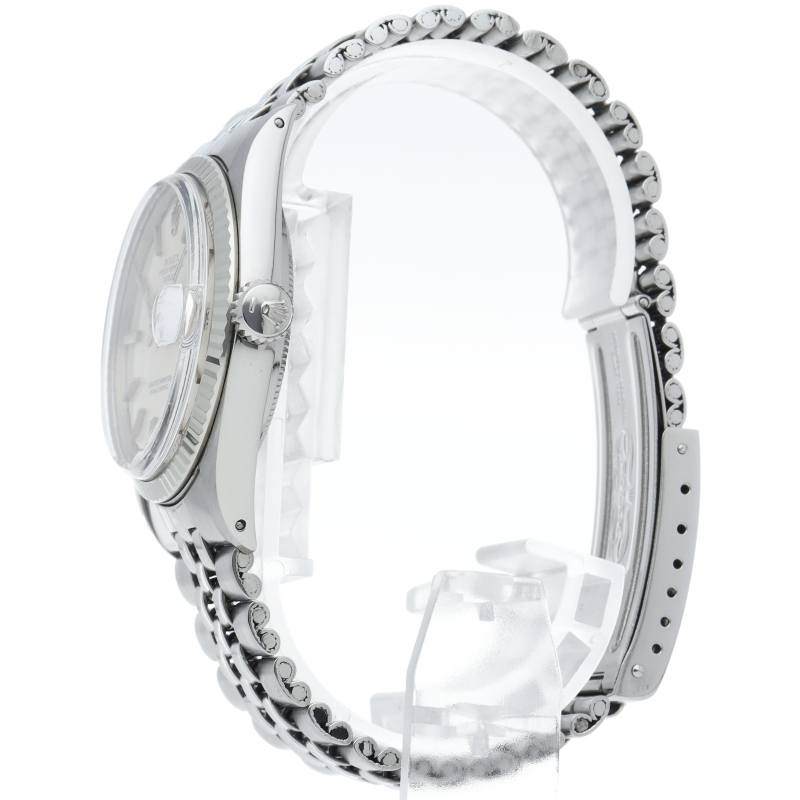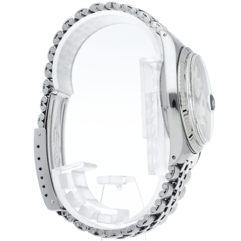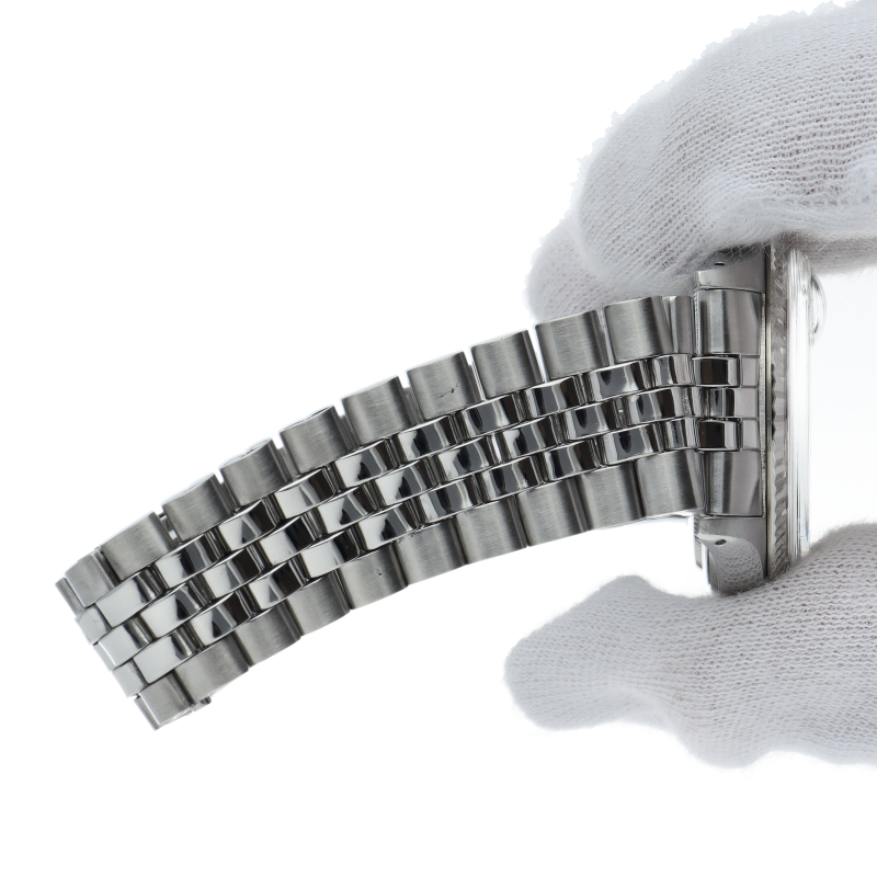 ロレックスのドレスウォッチの王道「デイトジャスト」。ホワイトゴールドとステンレスの組み合わせが高級感を感じさせる1本です。プラスチック風防仕様。