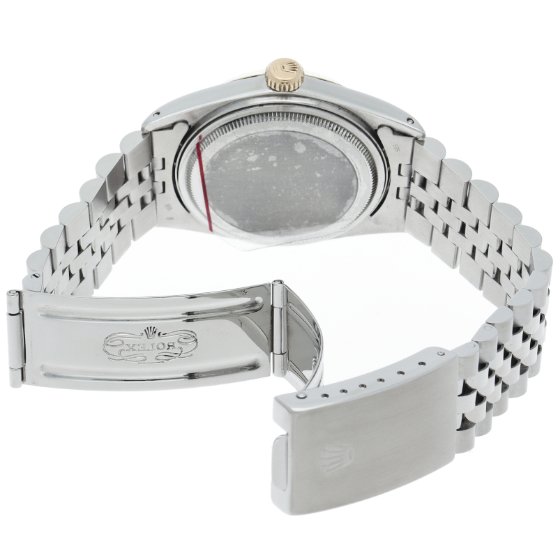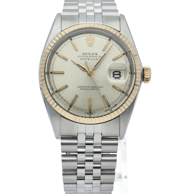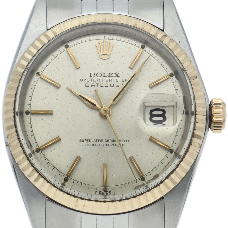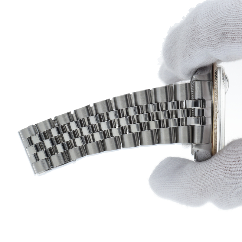 ロレックスのドレスウォッチの王道「デイトジャスト」。ホワイトゴールドとステンレスの組み合わせが高級感を感じさせる1本です。プラスチック風防仕様。