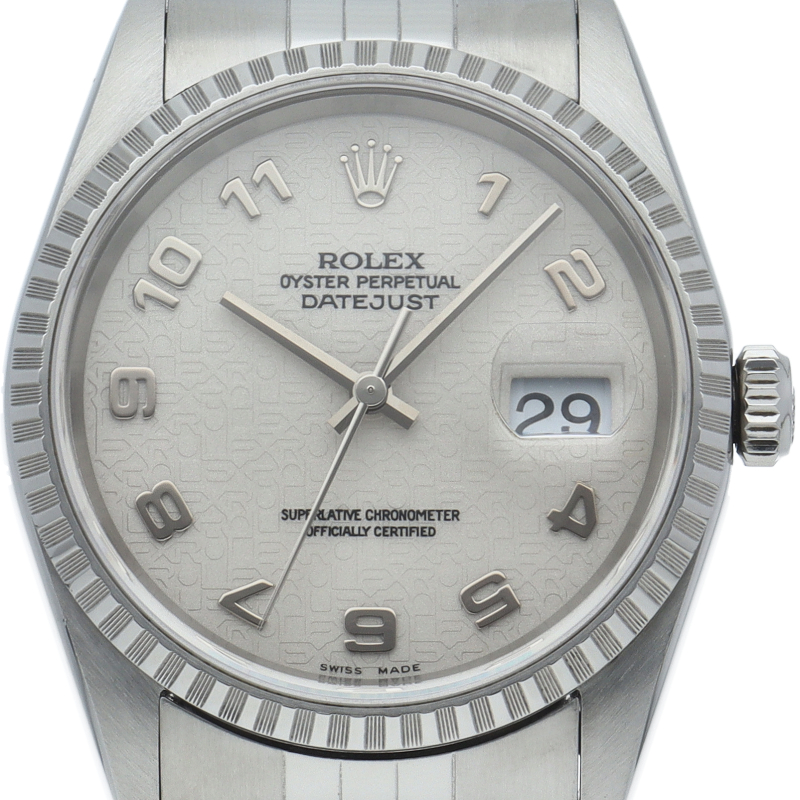ロレックスのドレスウォッチの王道「デイトジャスト」。ポリッシュベゼルとデイト表示機能もついてスポーティーで人気度の高い1本です。