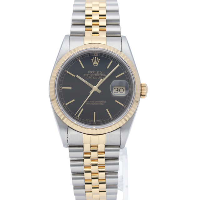 ロレックスのドレスウォッチの王道「デイトジャスト」。イエローゴールドとステンレスの組み合わせが上品で高級感を感じさせる1本です。