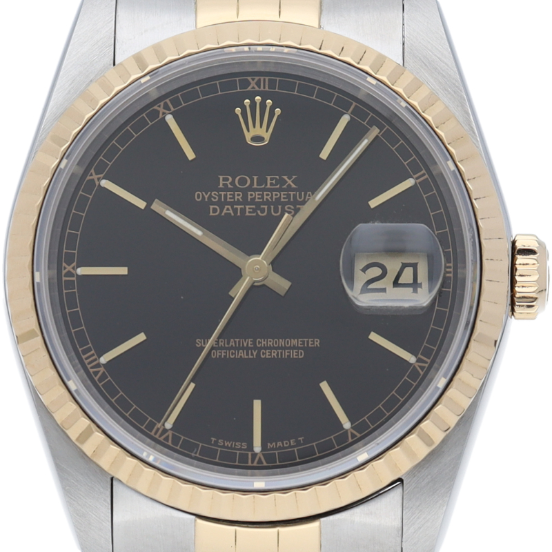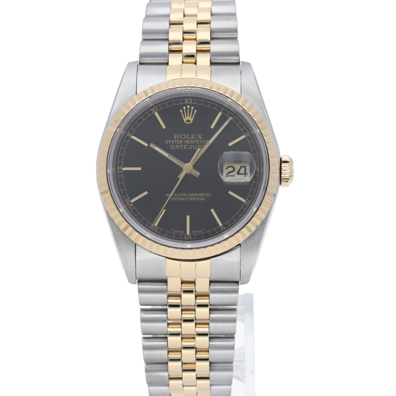 ロレックスのドレスウォッチの王道「デイトジャスト」。イエローゴールドとステンレスの組み合わせが上品で高級感を感じさせる1本です。