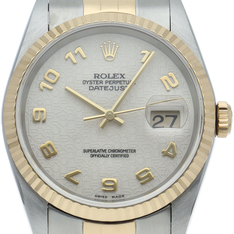 ロレックスのドレスウォッチの王道「デイトジャスト」。イエローゴールドとステンレスの組み合わせが上品で高級感を感じさせる1本です。