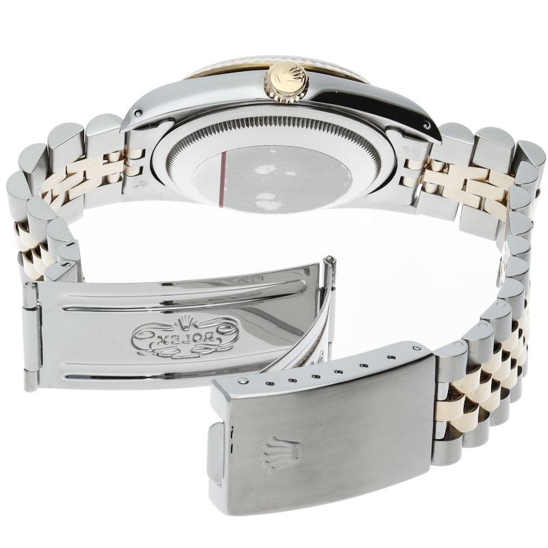 ロレックスのドレスウォッチの王道「デイトジャスト」。イエローゴールドとステンレスの組み合わせが上品で高級感を感じさせる1本です。