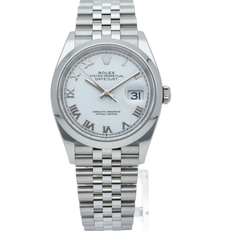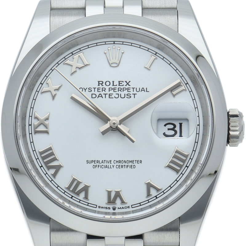 ケース径36mmのメンズモデル「デイトジャスト36」。14件もの特許を取得し、新開発の脱進機のクロナジーエスケープメントを装備した上で70時間ものロングパワーリザーブを確保した自社開発キャリバー3235を搭載します。