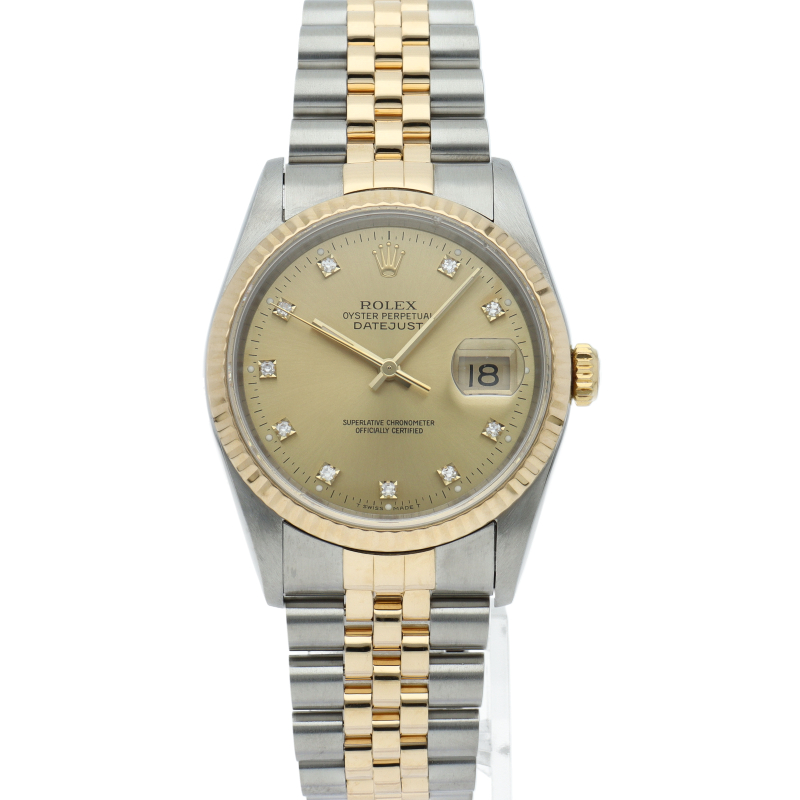 ロレックスのドレスウォッチの王道「デイトジャスト」。イエローゴールドとステンレスの組み合わせが上品で高級感を感じさせる1本です。
