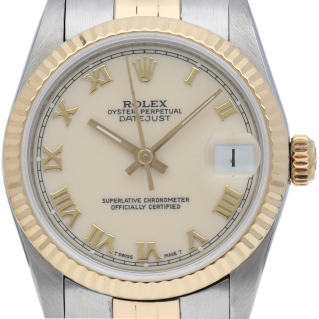 ロレックスのドレスウォッチで幅広い年齢層に愛されているデイトジャスト。イエローゴールドとステンレスのコンビ仕様です。ボーイズサイズ。