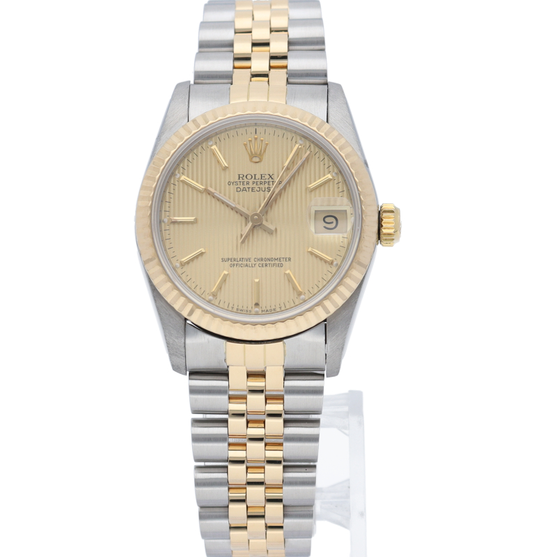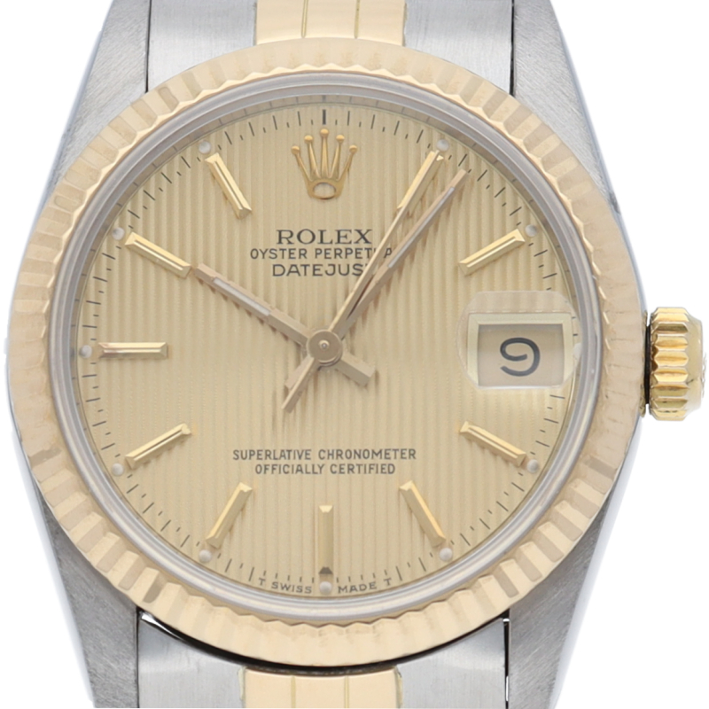 ロレックスのドレスウォッチで幅広い年齢層に愛されているデイトジャスト。イエローゴールドとステンレスのコンビ仕様です。ボーイズサイズ。