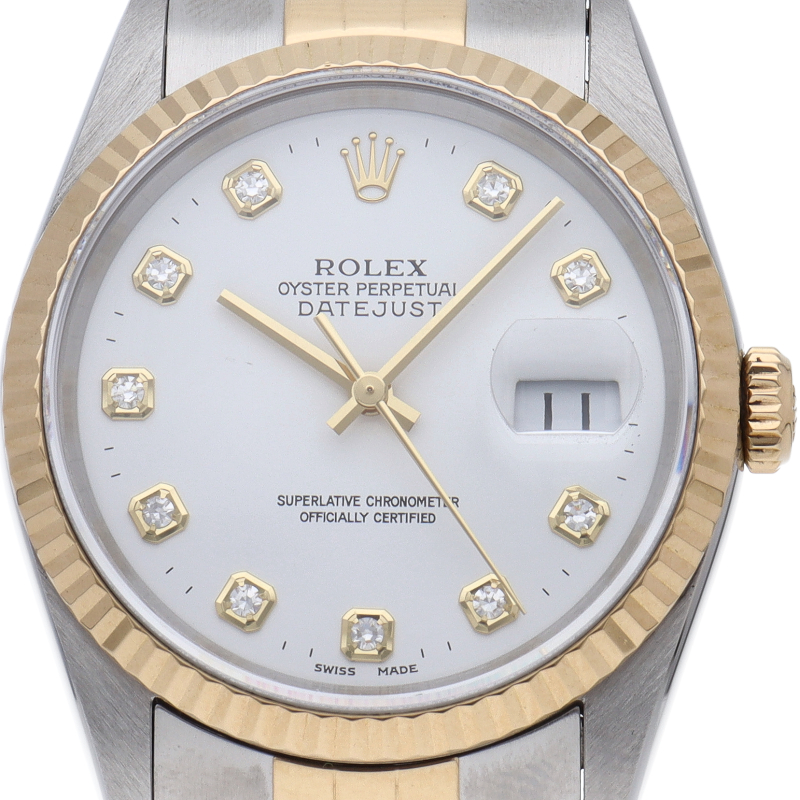 ロレックスのドレスウォッチの王道「デイトジャスト」。イエローゴールドとステンレスの組み合わせが上品で高級感を感じさせる1本です。