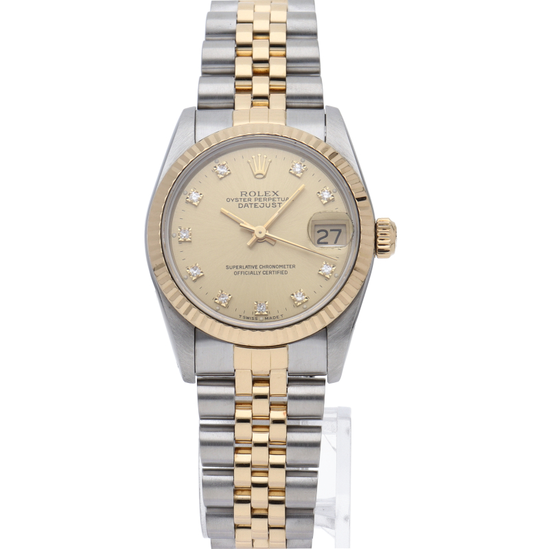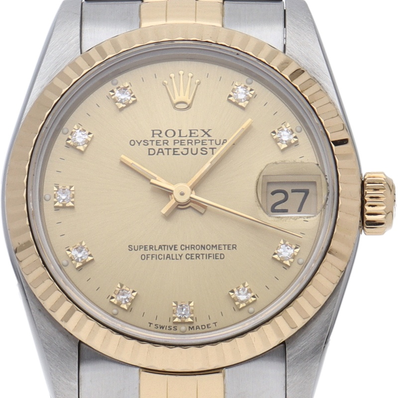 ロレックスのドレスウォッチで幅広い年齢層に愛されているデイトジャスト。イエローゴールドとステンレスのコンビ仕様です。ボーイズサイズ。