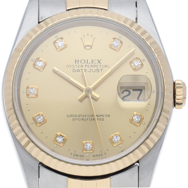 ロレックスのドレスウォッチの王道「デイトジャスト」。イエローゴールドとステンレスの組み合わせが上品で高級感を感じさせる1本です。