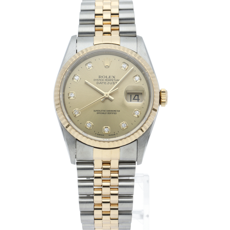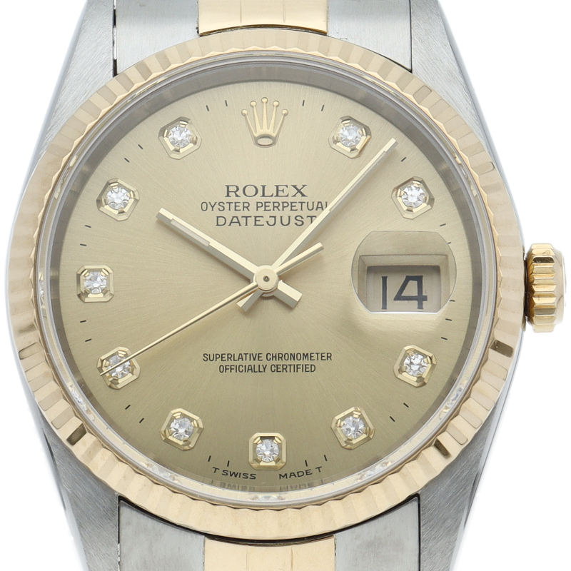 ロレックスのドレスウォッチの王道「デイトジャスト」。イエローゴールドとステンレスの組み合わせが上品で高級感を感じさせる1本です。