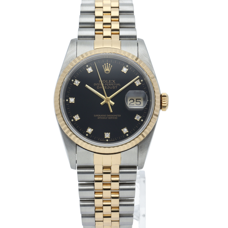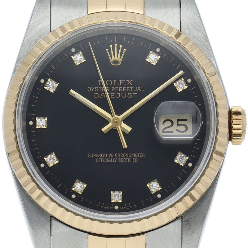 ロレックスのドレスウォッチで幅広い年齢層に愛されている「デイトジャスト」。イエローゴールドとステンレスのコンビ仕様に10Pダイヤが施されております。