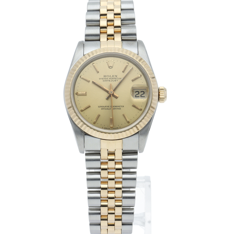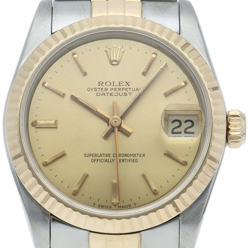 ロレックスのドレスウォッチで幅広い年齢層に愛されているデイトジャスト。イエローゴールドとステンレスのコンビ仕様です。ボーイズサイズ。