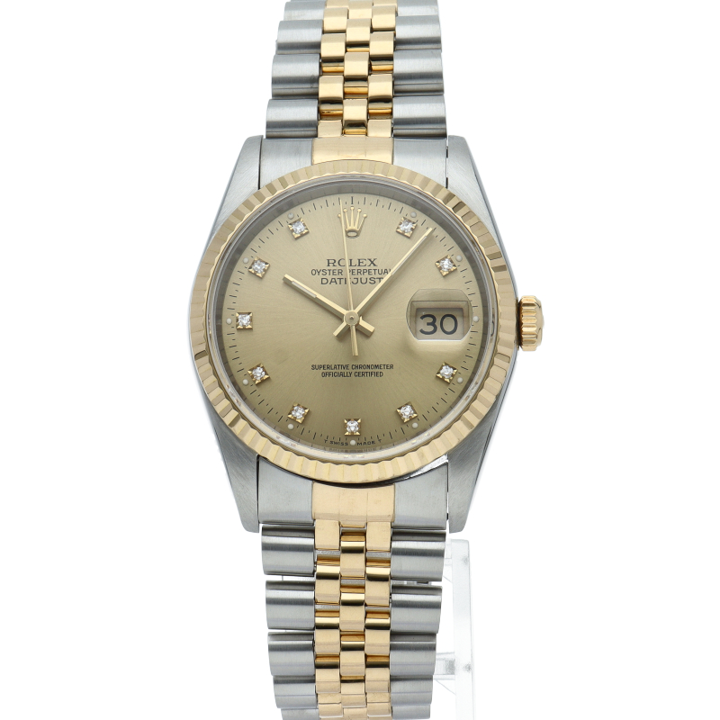 ロレックスのドレスウォッチの王道「デイトジャスト」。イエローゴールドとステンレスの組み合わせが上品で高級感を感じさせる1本です。
