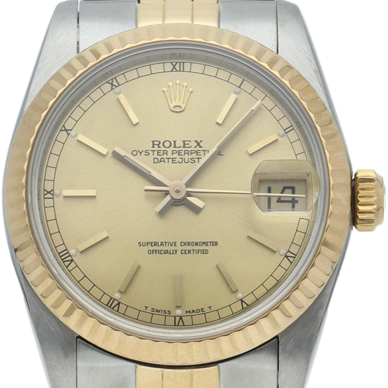 ロレックスのドレスウォッチで幅広い年齢層に愛されているデイトジャスト。イエローゴールドとステンレスのコンビ仕様です。ボーイズサイズ。