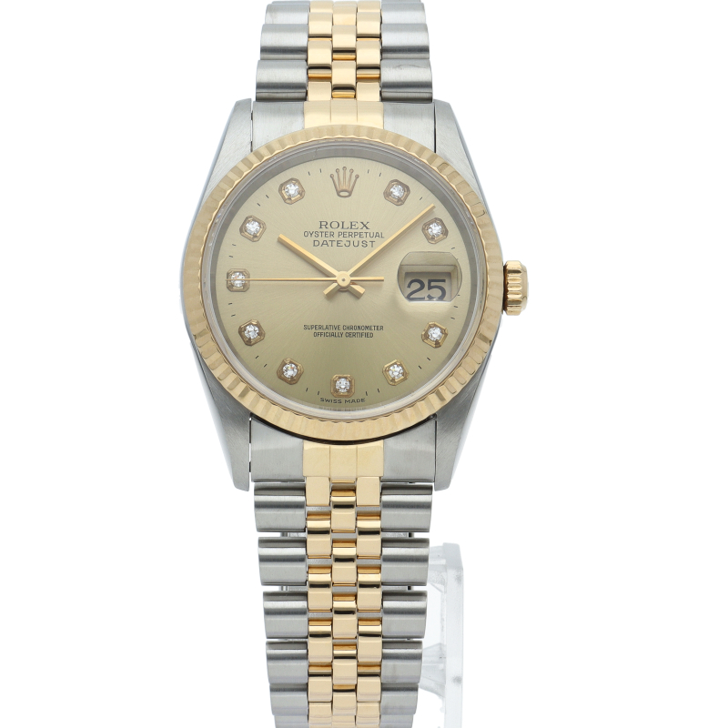 ロレックスのドレスウォッチの王道「デイトジャスト」。イエローゴールドとステンレスの組み合わせが上品で高級感を感じさせる1本です。