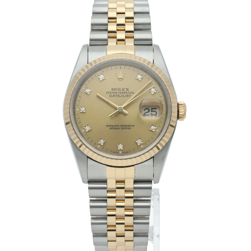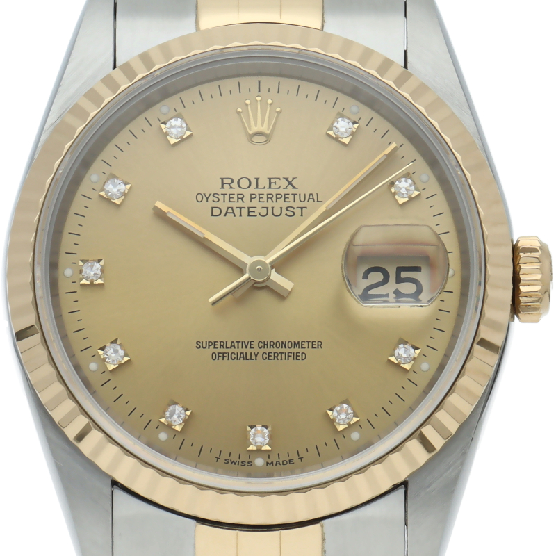 ロレックスのドレスウォッチの王道「デイトジャスト」。イエローゴールドとステンレスの組み合わせが上品で高級感を感じさせる1本です。