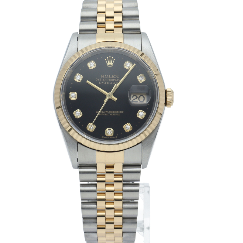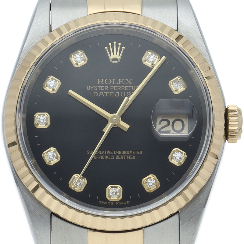 ロレックスのドレスウォッチの王道「デイトジャスト」。イエローゴールドとステンレスの組み合わせが上品で高級感を感じさせる1本です。