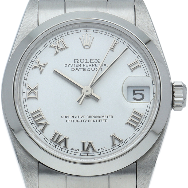 ロレックスのドレスウォッチの王道「デイトジャスト」。ポリッシュベゼルとデイト表示機能もついてスポーティーで人気度の高い1本です。