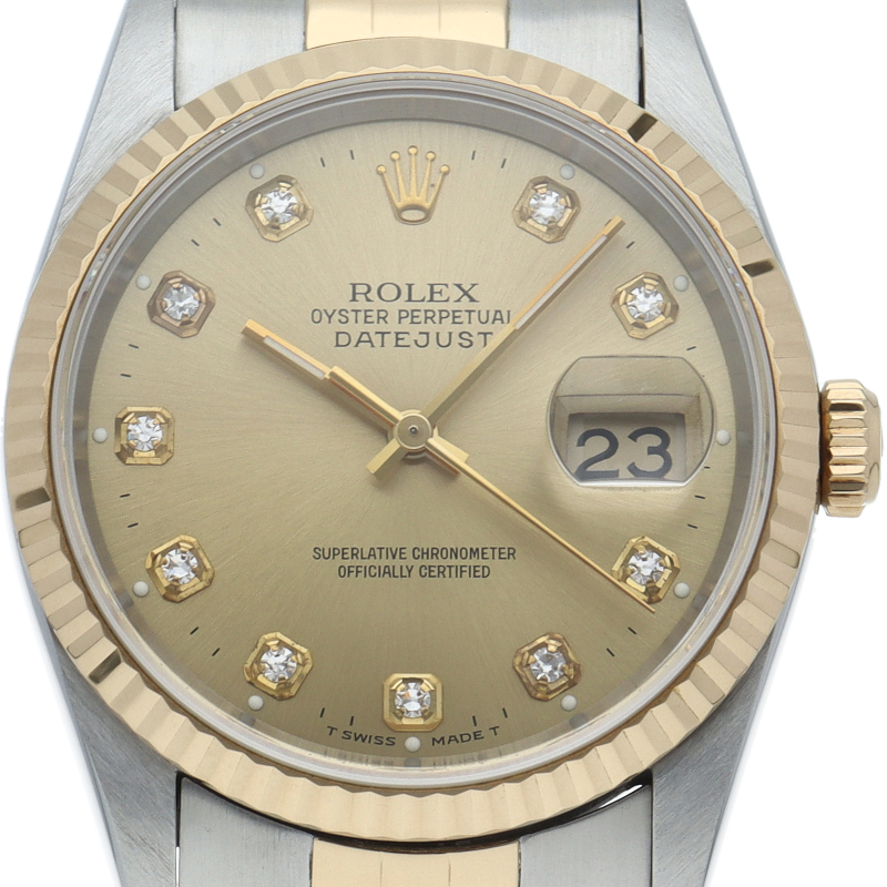 ロレックスのドレスウォッチの王道「デイトジャスト」。イエローゴールドとステンレスの組み合わせが上品で高級感を感じさせる1本です。