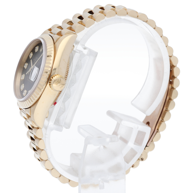 ロレックスのドレスウォッチで幅広い年齢層に愛されているデイトジャスト。イエローゴールドのケース、シャンパン文字盤に10Pダイヤが施された豪華な1本です。