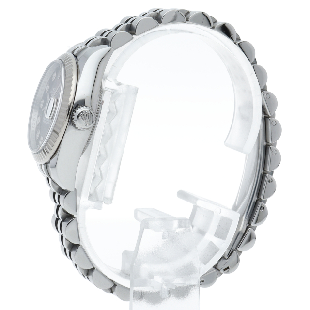 レックスのドレスウォッチで幅広い年齢層に愛されているデイトジャスト。ホワイトゴールドとステンレスのコンビ仕様に10Pダイヤが施され豪華です。