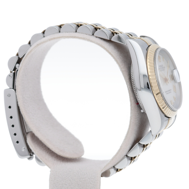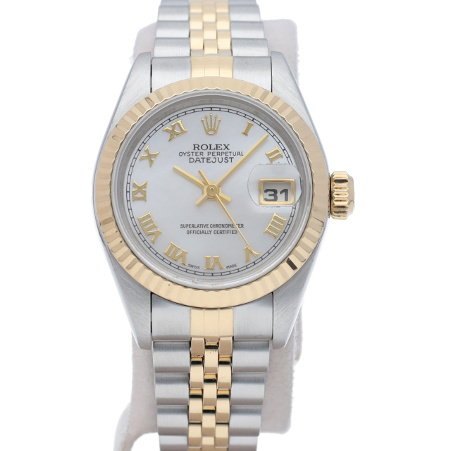 ロレックスのドレスウォッチで幅広い年齢層に愛されているデイトジャスト。イエローゴールドとステンレスのコンビ仕様にホワイトシェルの文字盤が映えて豪華です。