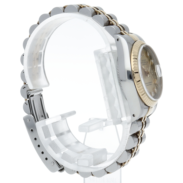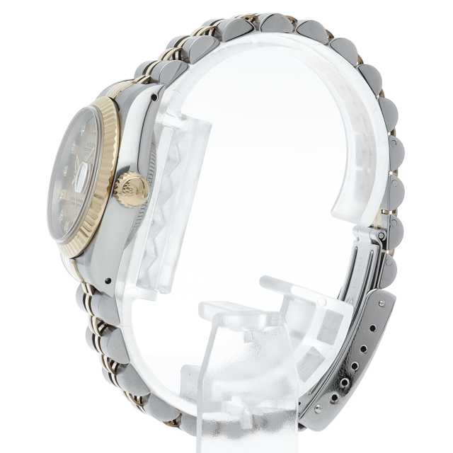 ロレックスの人気ドレスウォッチで幅広年齢層に人気のデイトジャスト。イエローゴールドとステンレスのコンビ仕様に10Pダイヤが施されてます。