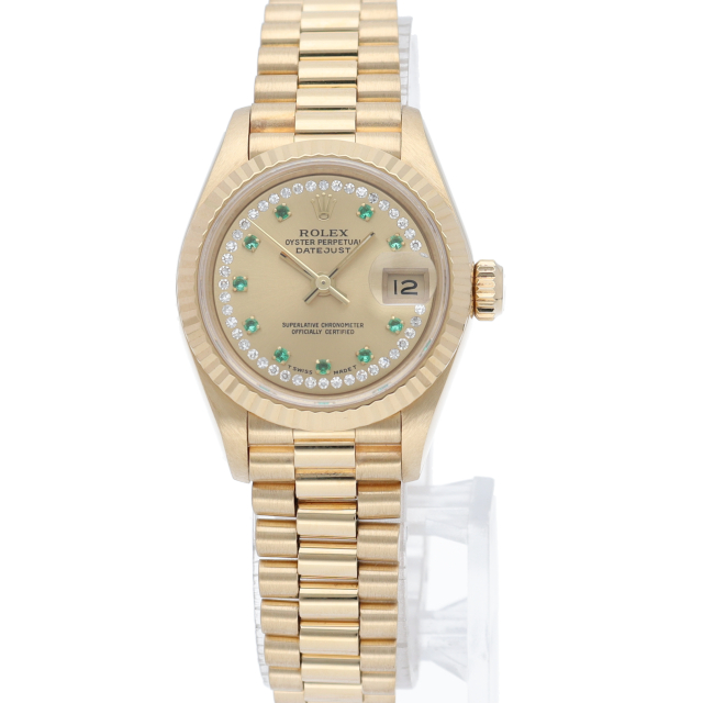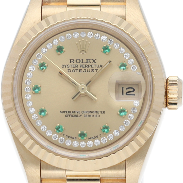 デイトジャスト レディース時計 10Pエメラルド サークルダイヤ