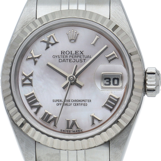 ロレックスのドレスウォッチで幅広い年齢層に愛されているデイトジャスト。ホワイトゴールドとステンレスのコンビ仕様にホワイトシェルの文字盤が上品です。