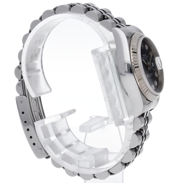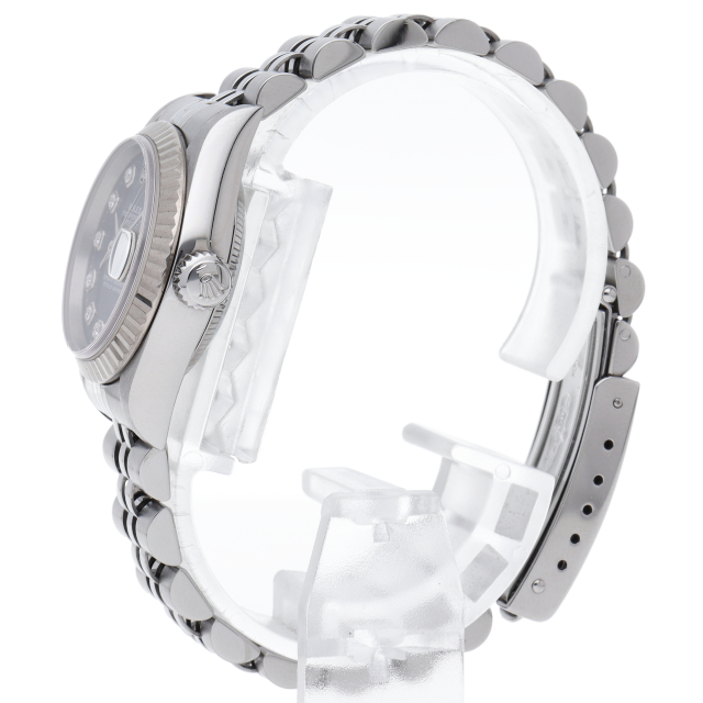 ロレックスのドレスウォッチで幅広い年齢層に愛されているデイトジャスト。ホワイトゴールドとステンレスのコンビ仕様に10Pダイヤが施され豪華です。