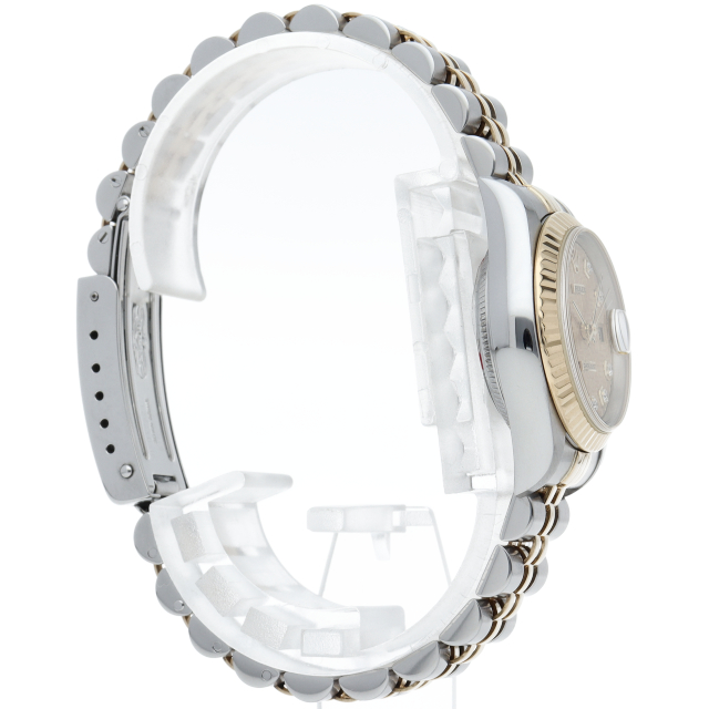 ロレックスのドレスウォッチで幅広い年齢層に愛されている「デイトジャスト」。イエローゴールドとステンレスのコンビ仕様に10Pダイヤが施され豪華です。
