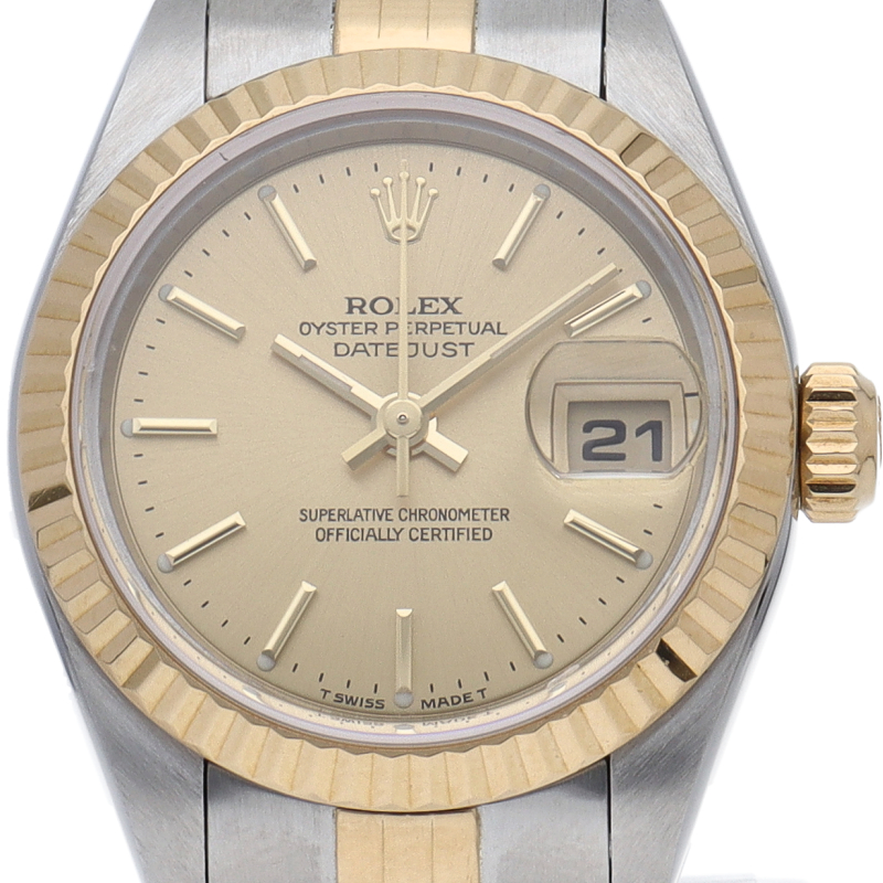 ロレックスの人気ドレスウォッチで幅広年齢層に人気のデイトジャスト。イエローゴールドとステンレスの組み合わせが上品です。