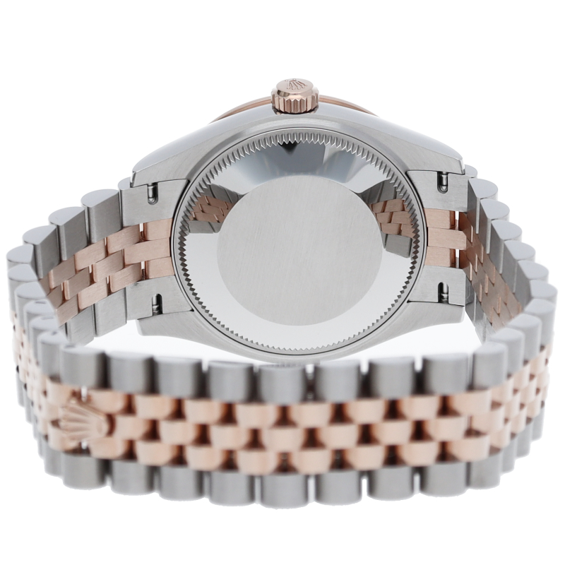 ケース径31mmのボーイズモデル「オイスターパーペチュアル デイトジャスト31」。ベゼルに24ポイントのダイヤモンドをセッティングしたステンレスとエバーローズゴールドのコンビモデルとなり、文字盤は10ポイントダイヤです。搭載ムーブメントのキャリバー2236は、ロレックスが特許を取得したシリコン製シロキシ・ヘアスプリングを採用し、ケーシング後の日差は-2~+2秒で調整されています。