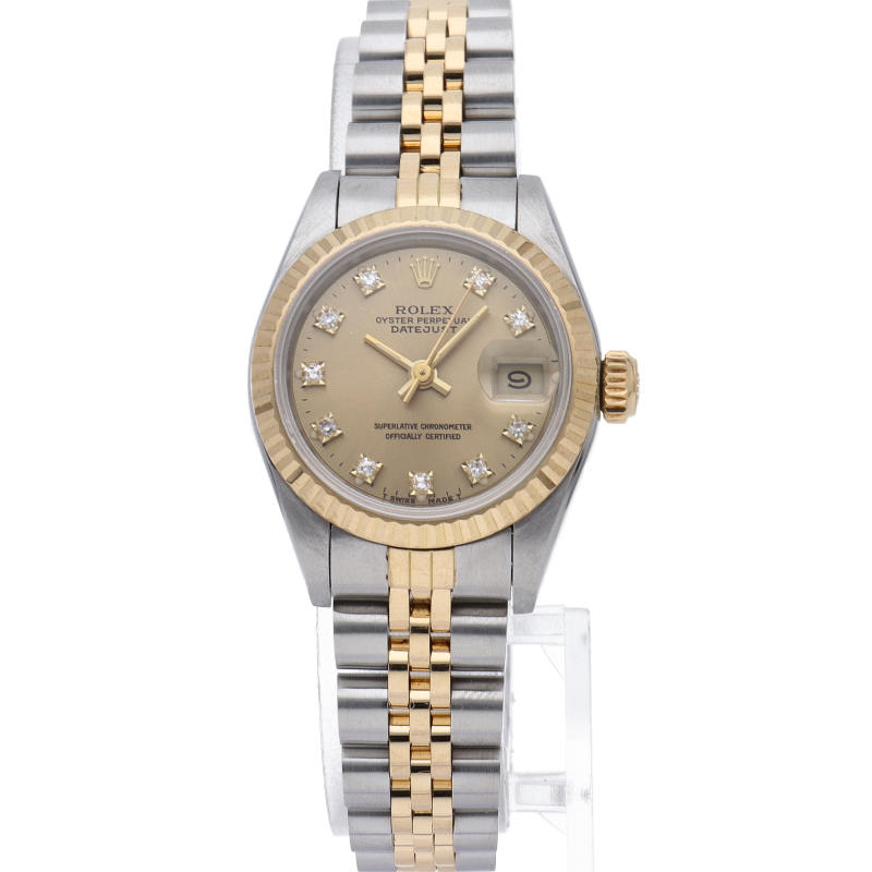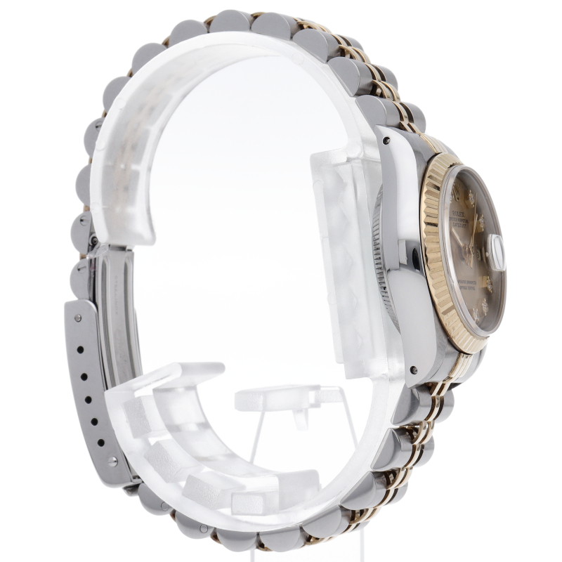 ロレックスの人気ドレスウォッチで幅広年齢層に人気のデイトジャスト。イエローゴールドとステンレスのコンビ仕様に10Pダイヤが施されてます。