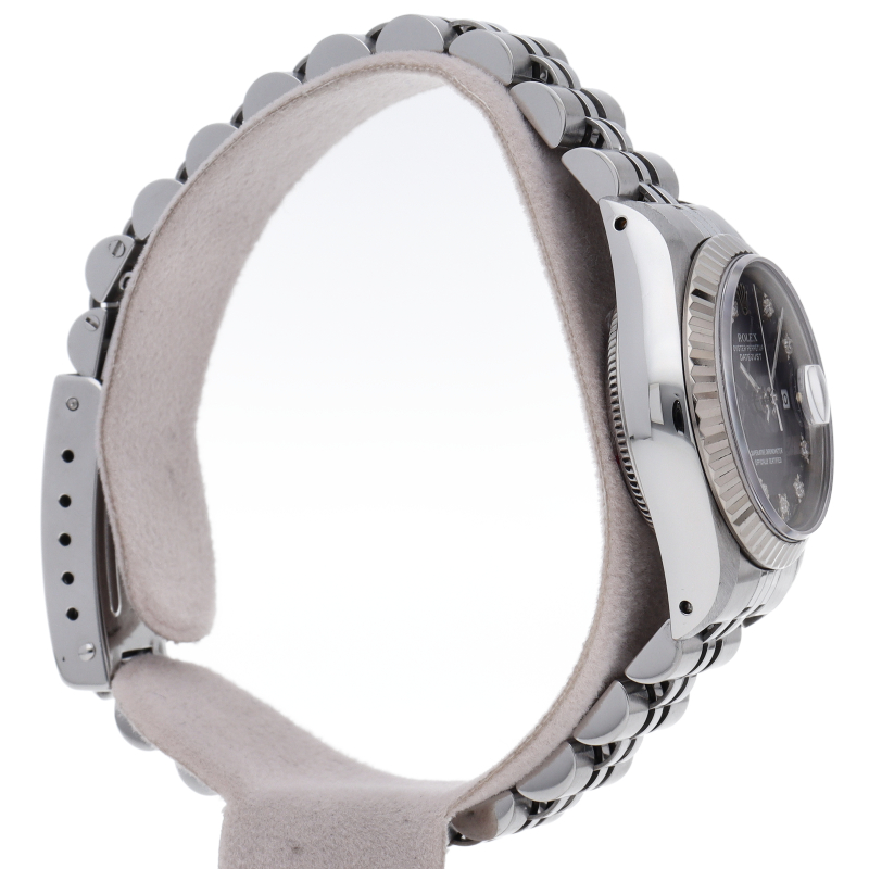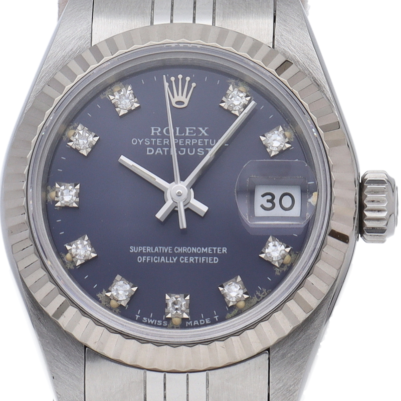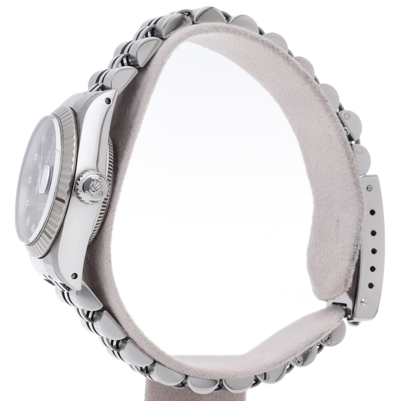 ロレックスのドレスウォッチで幅広い年齢層に愛されているデイトジャスト。ホワイトゴールドとステンレスのコンビ仕様に10Pダイヤが施され豪華です。