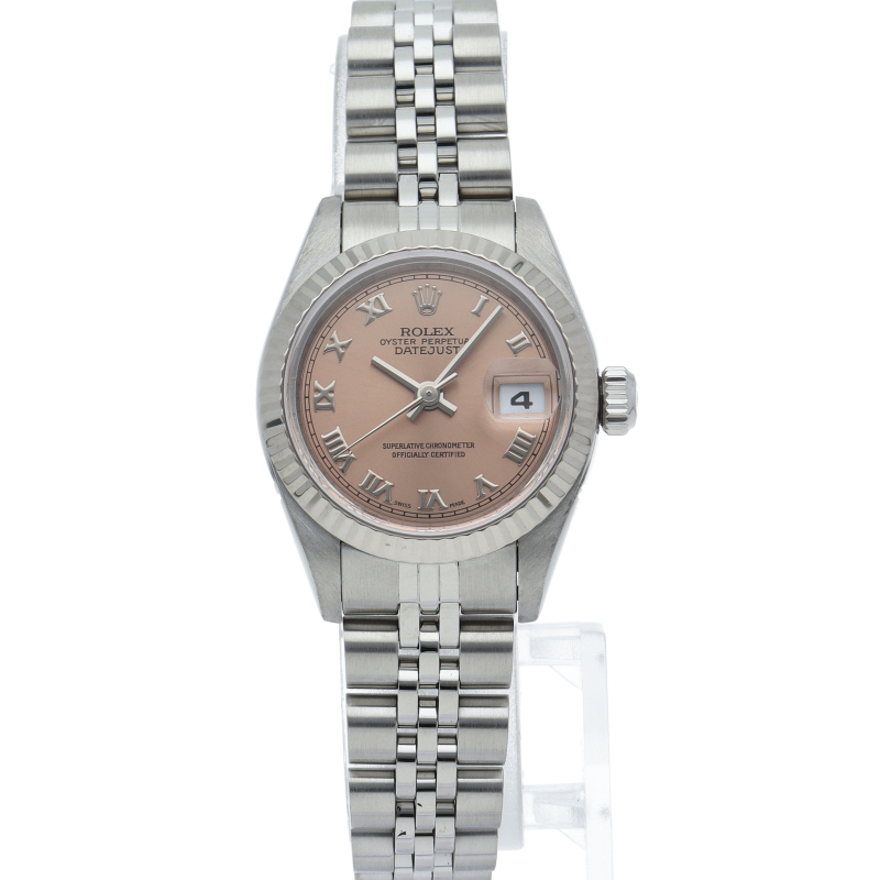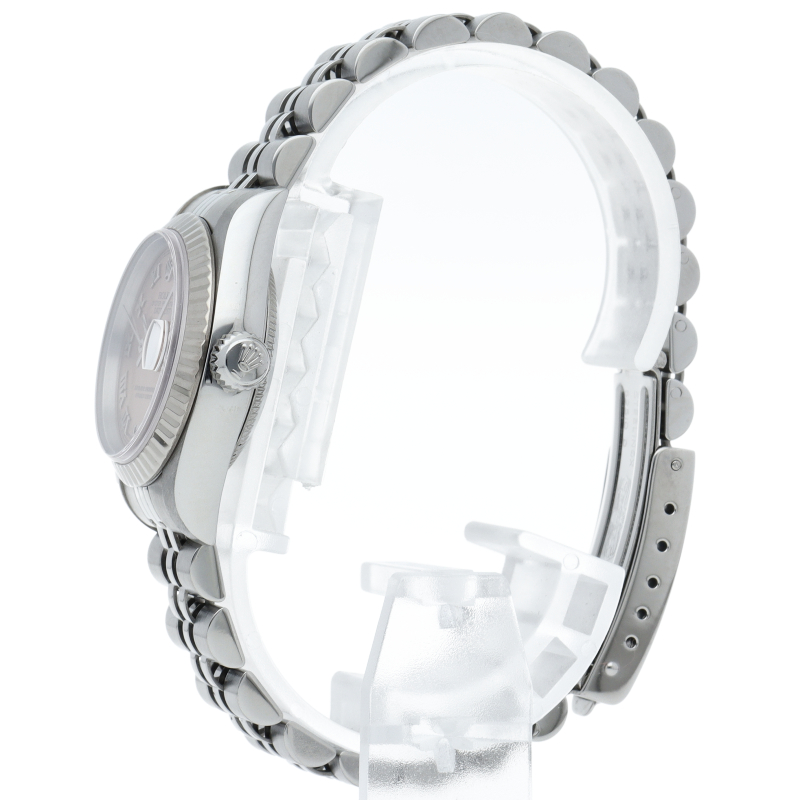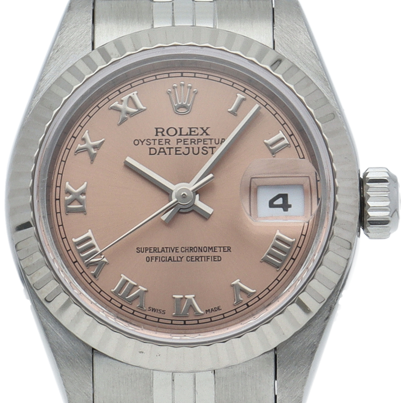 ロレックスのドレスウォッチで幅広い年齢層に愛されているデイトジャスト。ホワイトゴールドとステンレスのコンビ仕様に10Pダイヤが施され豪華です。