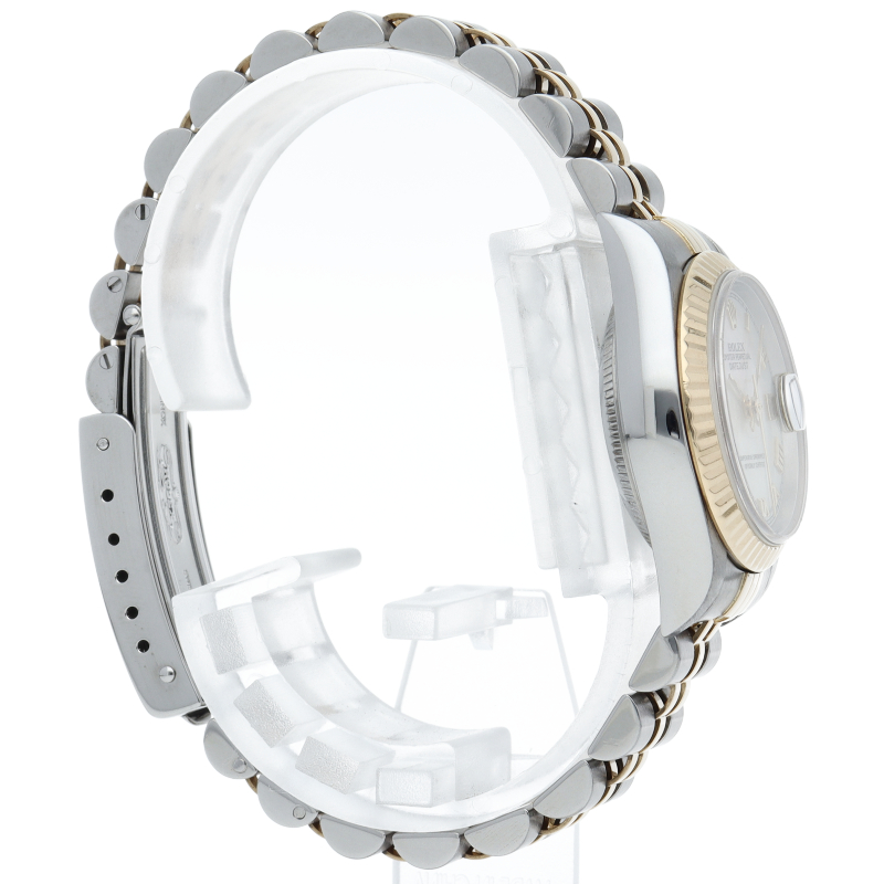 ロレックスのドレスウォッチで幅広い年齢層に愛されているデイトジャスト。イエローゴールドとステンレスのコンビ仕様にホワイトシェルの文字盤が映えて豪華です。