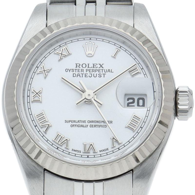 ロレックスの人気ドレスウォッチで幅広年齢層に人気のデイトジャスト。ホワイトゴールドとステンレスの組み合わせが上品です。人気のローマンインデックス。