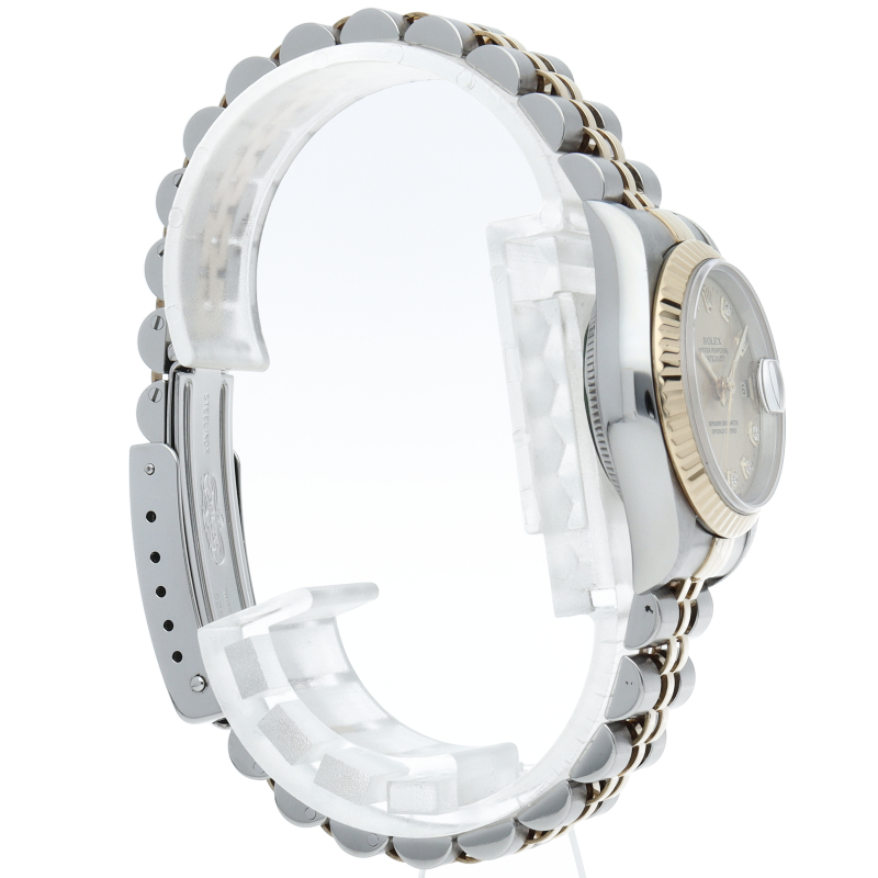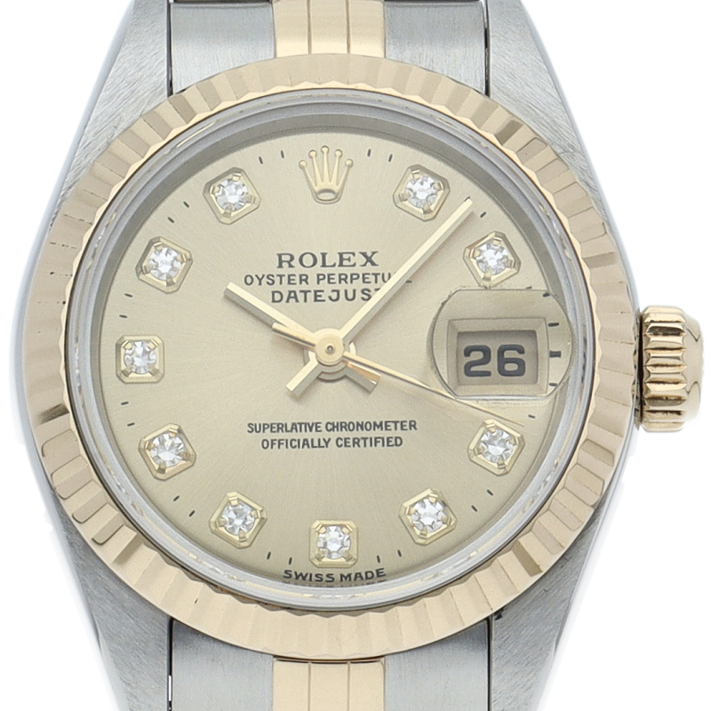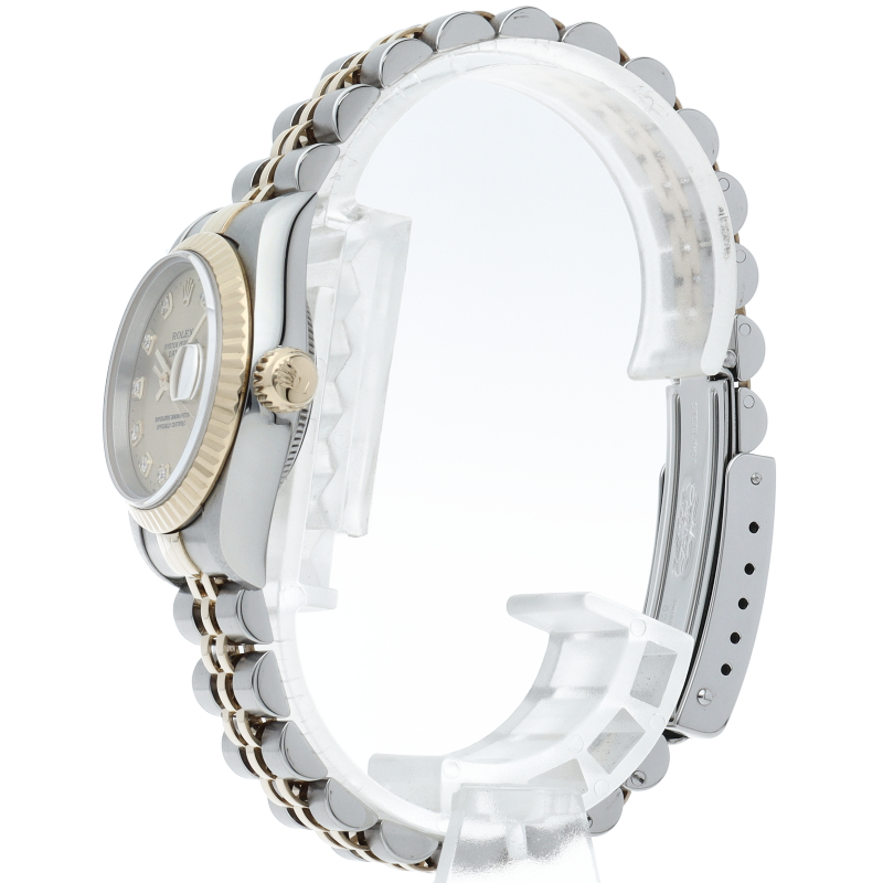 ロレックスの人気ドレスウォッチで幅広年齢層に人気のデイトジャスト。イエローゴールドとステンレスのコンビ仕様に10Pダイヤが施されてます。