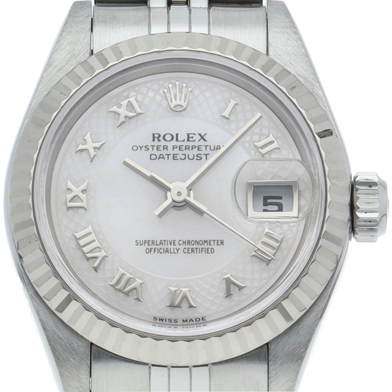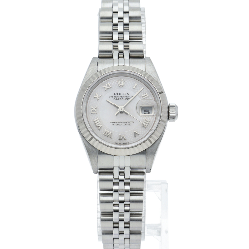 男女問わず永遠のステータスシンボルとも言えるロレックスの“デイトジャスト”。様々なバリエーションがありますが、こちらは ピンクシェル文字盤にデコレーション(格子模様)を施した希少性の高いモデルです。ゴールドの光沢にも負けないピンクシェルの柔らかな光沢感が魅力です。