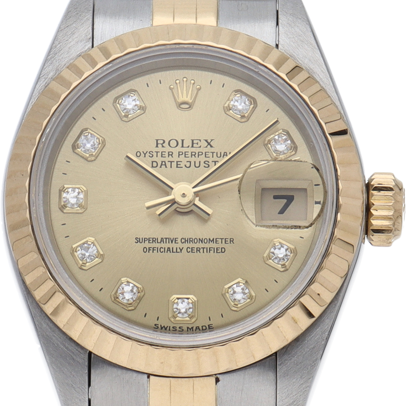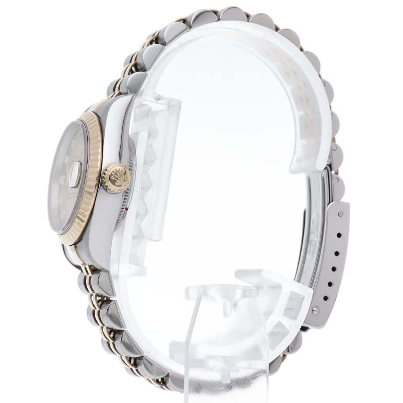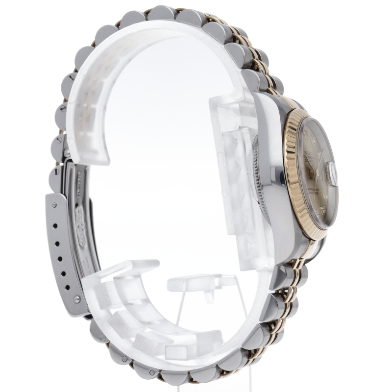 ロレックスの人気ドレスウォッチで幅広年齢層に人気のデイトジャスト。イエローゴールドとステンレスのコンビ仕様に10Pダイヤが施されてます。