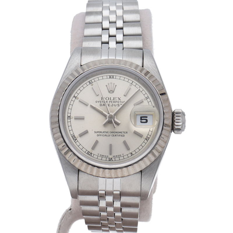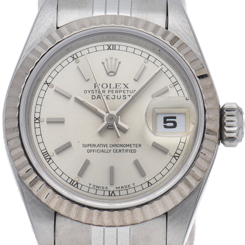 ロレックスの人気ドレスウォッチで幅広年齢層に人気のデイトジャスト。ホワイトゴールドとステンレスの組み合わせが上品です。