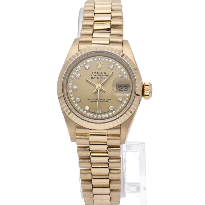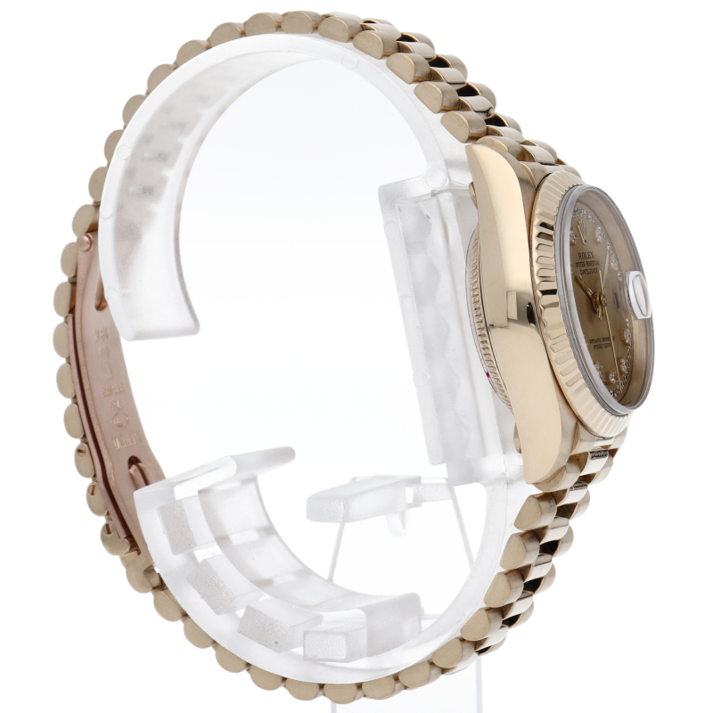 ロレックスのドレスウォッチで幅広い年齢層に愛されているデイトジャスト。イエローゴールドを贅沢に使用した高級感溢れるステータスウォッチです。文字盤にはサークルダイヤ付。