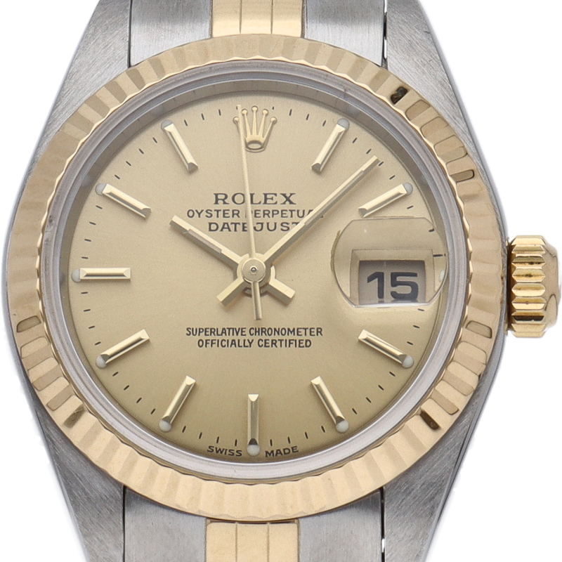 ロレックスの人気ドレスウォッチで幅広年齢層に人気のデイトジャスト。イエローゴールドとステンレスの組み合わせが上品です。
