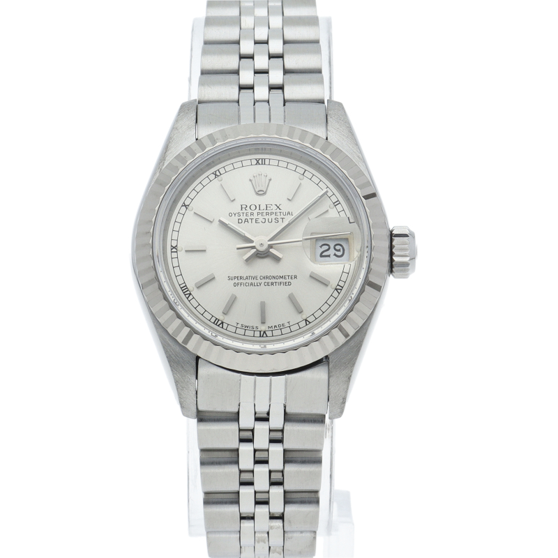 ロレックスの人気ドレスウォッチで幅広い年齢層に人気のデイトジャスト。ホワイトゴールドとステンレスの組み合わせが上品です。