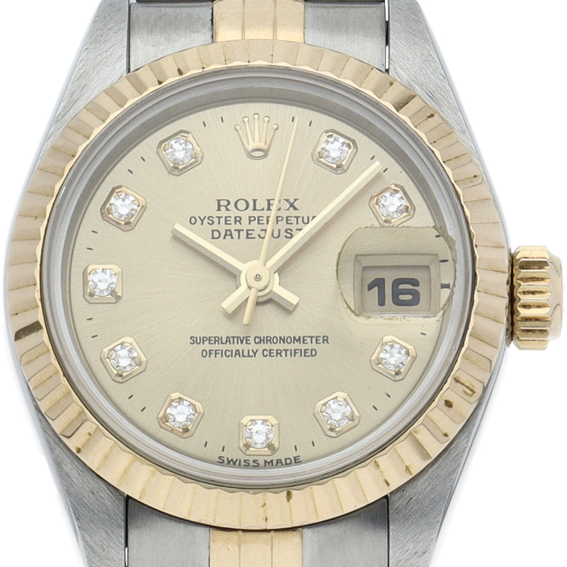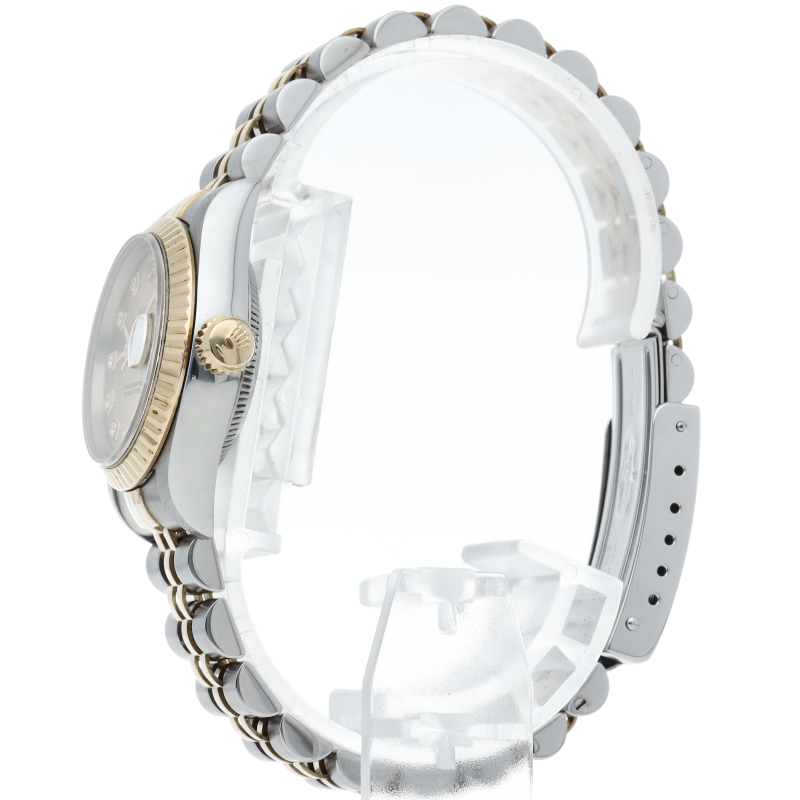 ロレックスの人気ドレスウォッチで幅広年齢層に人気のデイトジャスト。イエローゴールドとステンレスのコンビ仕様に10Pダイヤが施されてます。