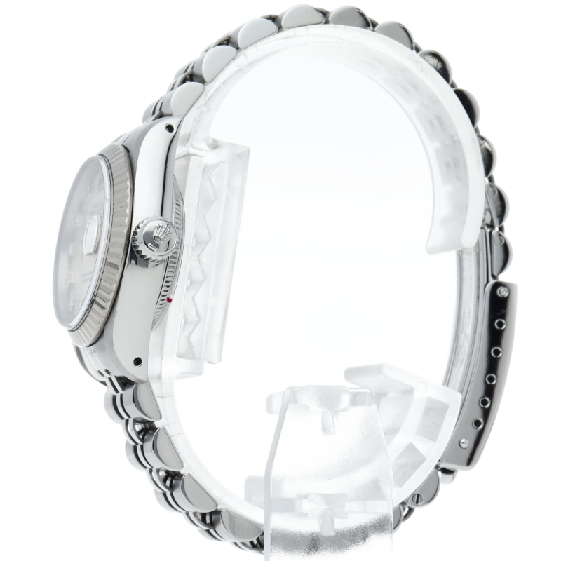 ロレックスのドレスウォッチで幅広い年齢層に愛されているデイトジャスト。ホワイトゴールドとステンレスのコンビ仕様に10Pダイヤが施され豪華です。